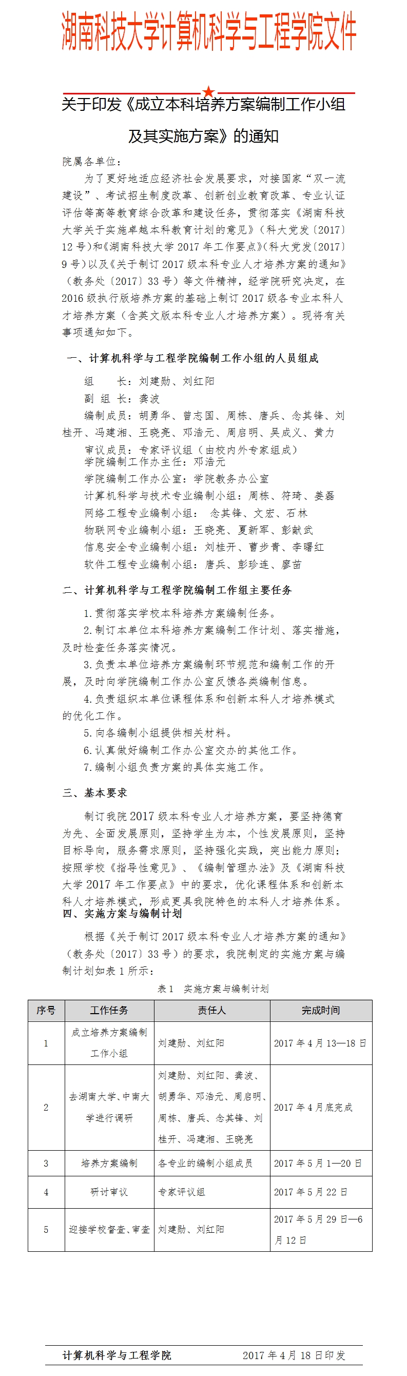 关于印发《成立本科培养方案编制工作小组及其实施方案》的通知