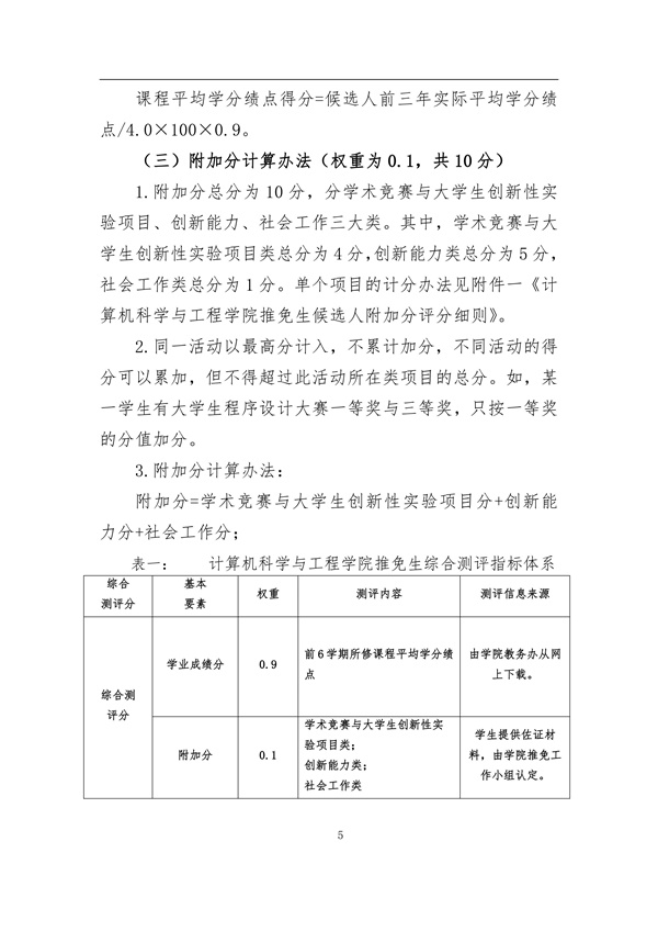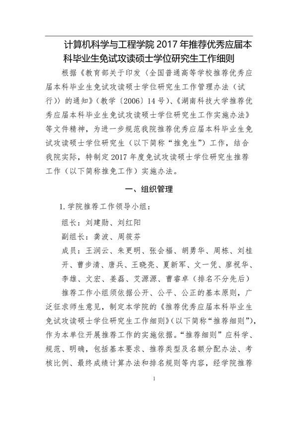附件一:2017年湖南科技大学 计算机科学与工程学院推免生候选人附加分评分细则
