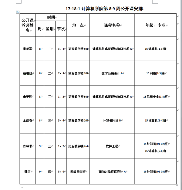 2017-2018-1学期我院公开课安排情况