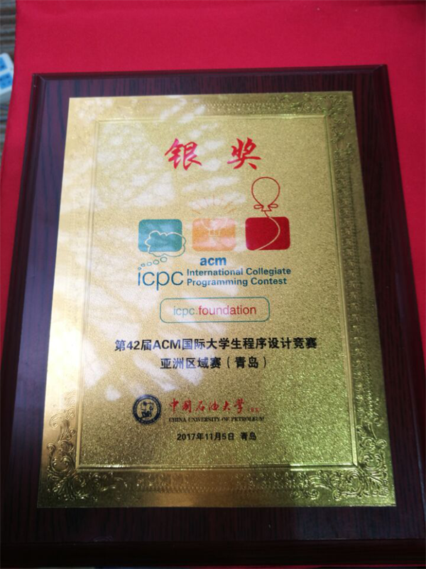 11月4日至5日,第42届ACM国际大学生程序设计竞赛亚洲区域赛(青岛)在中国石油大学(华东)体育馆举行。本次竞赛于5日上午9时正式开始,14时结束,经过5个小时的激烈角逐,我校由肖超群、赵志轩、唐志强3名同学组成的pulsating代表队荣获银奖。
