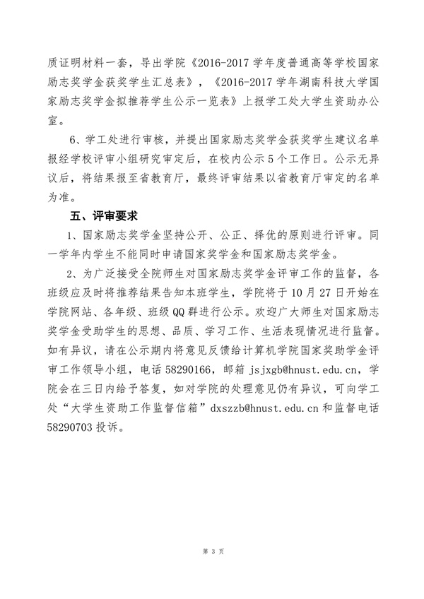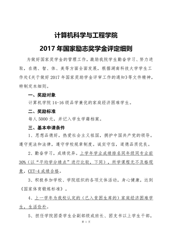 计算机科学与工程学院2017年国家励志奖学金评定细则
