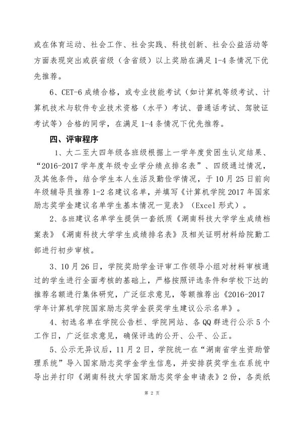 计算机科学与工程学院2017年国家励志奖学金评定细则..