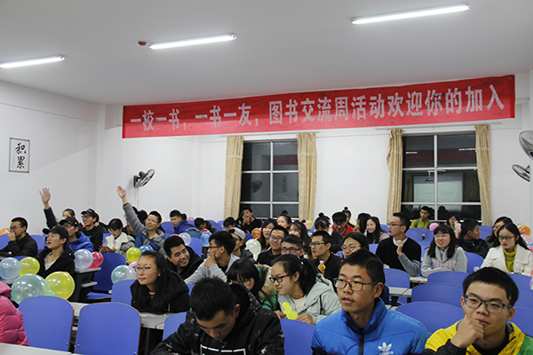 12月2日晚7点30分,“馨香阅读,激扬梦想”图书交流宣讲会在我院逸夫楼108室顺利举行,此次图书交流活动是由计算机科学与工程学院、资源环境与安全工程学院、信息与电气工程学院、我校晨曦文学社以及读书人俱乐部共同承办。辅导员老师袁东统出席参加此次宣讲会。