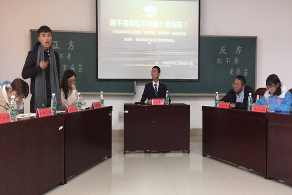 12月2日下午15点30分,为了让计算机科学与工程学院的同学们更好的了解辩论赛的流程,我院诚邀资源环境与安全工程学院辩论队在逸夫楼501举办了辩论表演赛。