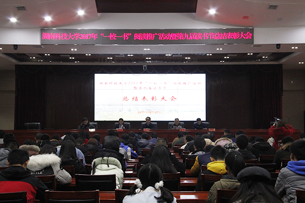12月27日下午2点30分,我校2017年“一校一书”阅读推广活动总结表彰大会暨第九届读书节在立德楼A附五楼报告厅成功举行。副校长施式亮、宣传部部长何频、校团委书记马缤辉、图书馆馆长刘雨芳、图书馆书记彭清华莅临本次活动。我院党委副书记周筱芬,获奖个人及部分同学与会。