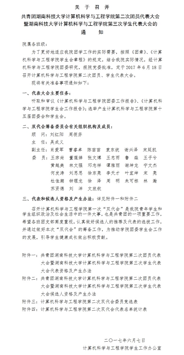 关于召开计算机科学与工程学院第二次“双代会”的通知