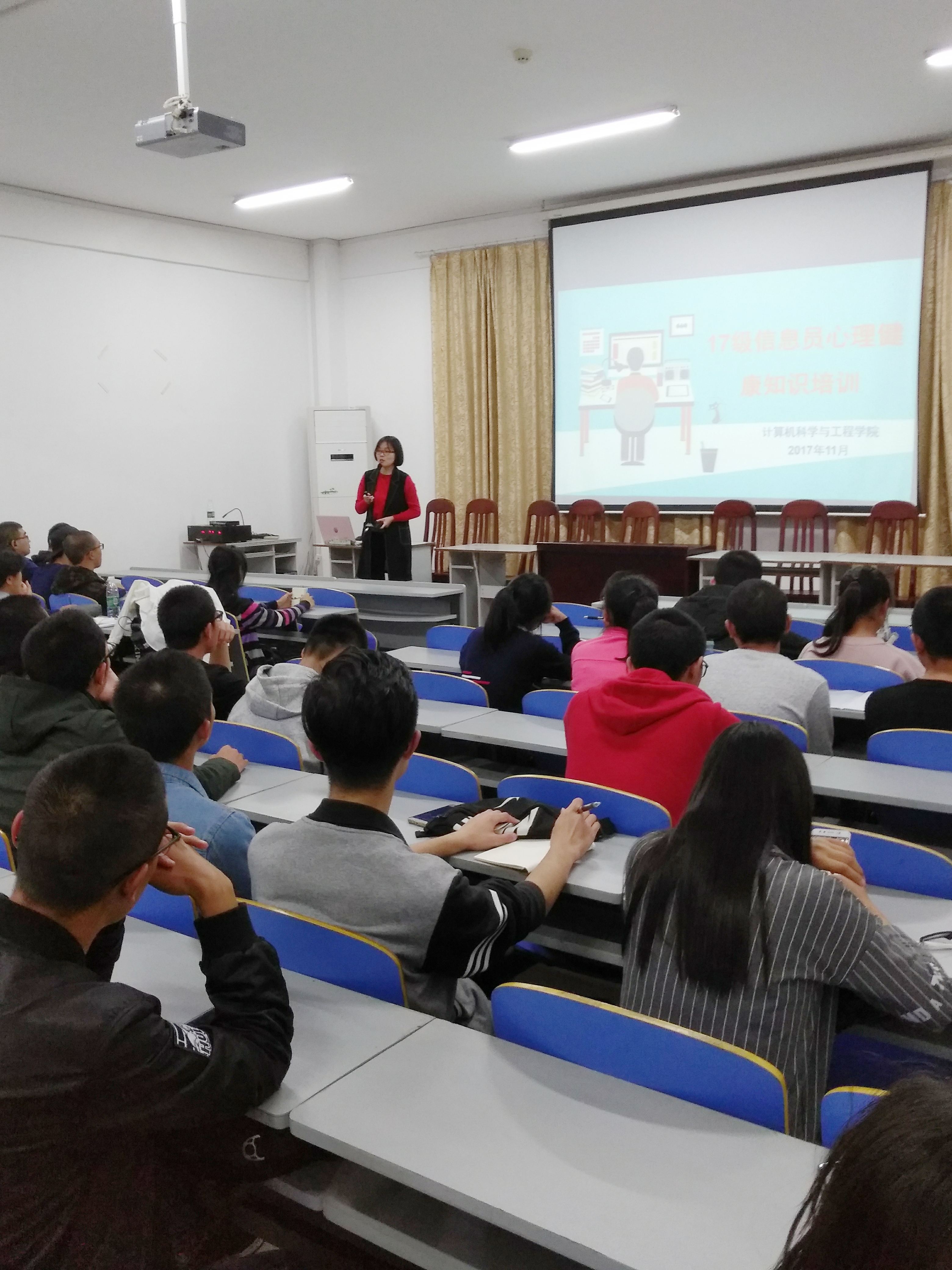 2017年11月3日19:00,心理辅导员陈苗苗老师在逸夫楼108为我院2017级主要学生干部和全体寝室信息员开展了心理健康教育知识和危机预防知识培训。
